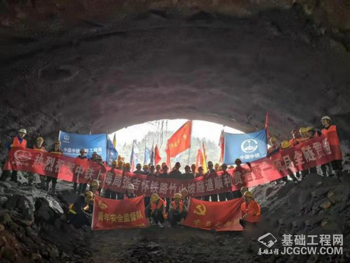10月15日上午,欢呼声中,中铁上海局承建的张吉怀铁路7标最长隧道——竹山坡隧道顺利贯通。