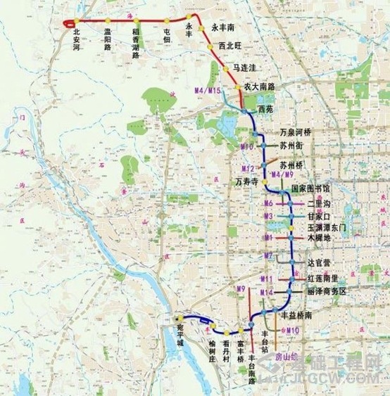 北京地铁16号线呈南北走向,全长49.8千米,线路北起六环外北安河,南至宛平,途经海淀区、西城区、丰台区,服务于海淀山后、三里河行政中心区、丰台火车站、丽泽商务区、丰台科技园区等重要城市功能区。