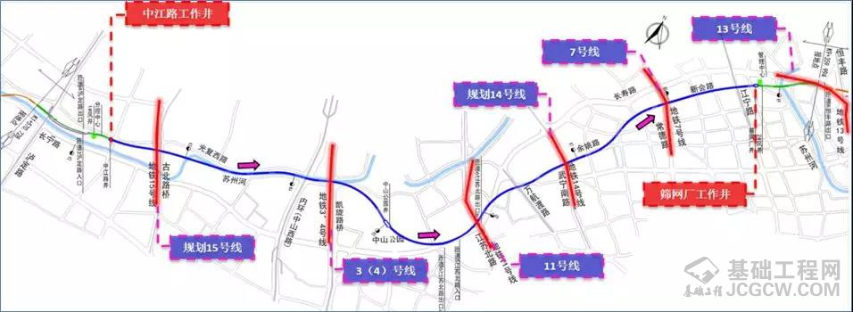 北横通道西段西起泸定路出入口,东至天目西路长安路,全长7.8公里,包含6.4公里的盾构隧道段。该工程将有效缓解延安高架和内环北段交通压力,有利于均衡路网交通,提高骨干路网可靠性。
