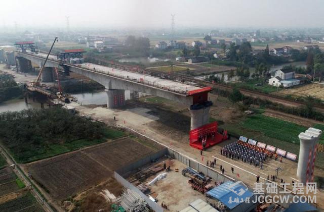 盐通铁路海安特大桥跨北陵河连续梁顺利合龙。