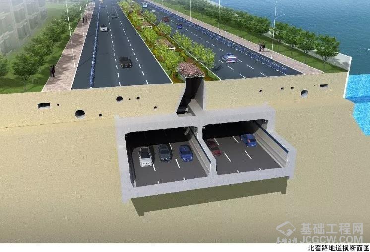 北翟路地道工程创新采用了全自然通风系统,在路中绿化带设置了通风及排烟口,隧道中每隔25米就开设一个“天窗”进行空气交换,成为名副其实会“呼吸”的地道;如发生火灾则利用排烟口“烟囱效应”排出烟气,确保隧道消防安全;隧道运营不需要设置风机,绿色节能,建设及运营成本大为降低。