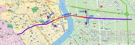 周家嘴路越江隧道工程西起杨浦区周家嘴路/内江路交叉口,东至浦东新区东靖路/张杨北路交叉口,全长4.45公里。隧道主线采用城市主干路标准,设计车速为60公里/小时,单管双层双向四车道规模。