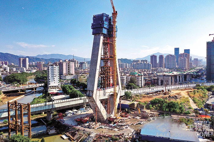 龙岩大桥项目主塔塔柱高120.3米,共分26节段进行,塔柱采用两侧对称浇筑方式,目前已完成下塔柱、下横梁、中塔柱的浇筑工作,完成建设塔高约87米,剩余8个节段预计用时3个月,有望春节前完成封顶。