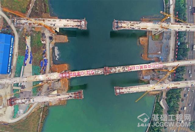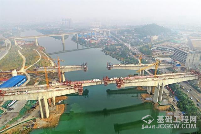 舞水湾滩特大桥包含1、2、3号三座特大桥,并行于湖南怀化舞水河上,在相距不足100米的范围内同时施工,三座168米跨度的连续刚构,并排跨越连续转弯超过180度的急弯河道和多处市政道路,这在国内尚属首次。