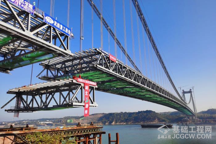 据了解,该项目主桥双塔钢桁梁悬索桥在同类型公路桥梁中跨度较大,施工技术含量高,且桥址位处航运极为繁忙,施工条件复杂、难度大。9月10日,大桥完成首片钢桁梁架设,历时66天后,38个节段钢梁完美合龙。