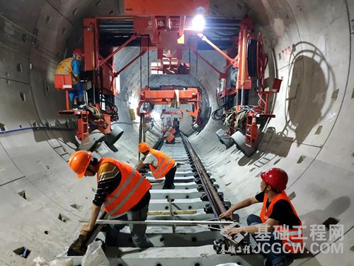 地铁的轨道工程主要包含道床、道岔铺设,钢轨焊接等工序,“长轨贯通”是指将25米钢轨一节一节的铺设完毕后,采用移动式闪光焊将25米钢轨焊接连通,使之形成无缝线路。