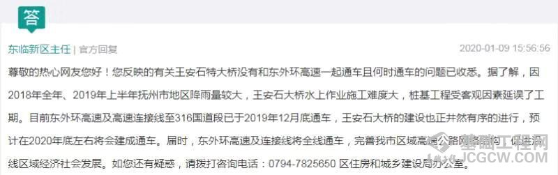 东外环高速及高速连接线至316国道段已于2019年12月底通车,王安石特大桥的建设也正井然有序地进行,预计在2020年底将会建成通车。届时,东外环高速及连接线将全线通车,完善我市区域高速公路网络结构,促进沿线区域经济社会发展。