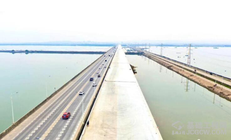 据悉,东海岛特大桥位于玉湛高速公路的尾端,跨越湛江港湾至东海岛,与现有东海岛大桥(旧桥)平行并列穿越通明海,是玉湛高速单体工程最大、跨度最长的跨海大桥。东海岛特大桥桥全长4.38公里,桥面净宽19.25米,采用设计速度100公里/小时的四车道高速公路标准建设。