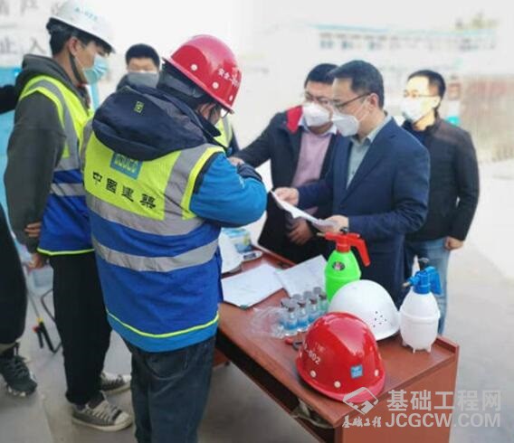 (施工现场,三里河街道办事处工作人员在核查防疫部署细节)