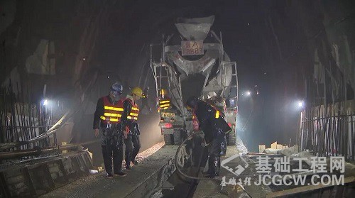 米林隧道出口施工现场,工人正分工明确地进行仰拱混凝土浇筑作业和掌子面上台阶开挖。该施工点由60名工人24小时循环作业,由于面临风积沙、冰碛层等复杂环境,每天施工进度仅能达到60公分。