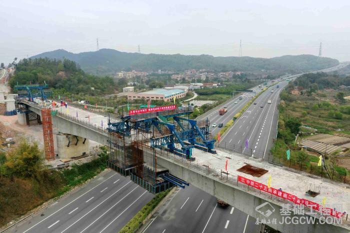 中铁二十五局承建的南沙港铁路站前2标工程,自广珠铁路鹤山南站引出,向东经雅瑶服务区东侧,并行广中江高速公路北侧至棠下镇,全长12.96公里,主要施工内容包括特大桥5座,大中桥4座,涵洞7座,承担5000多片预制梁的制造、运输和架设任务,承担全线的铺轨任务,其中鹤山佛开高速公路特大桥跨佛开高速连续梁为重点控制性工程。