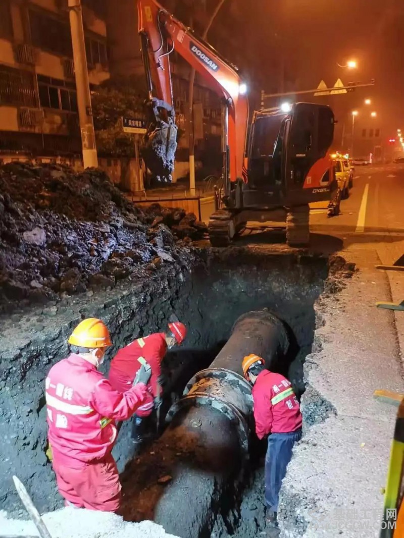 清理管道、更换螺栓、查漏回填,一项项工作有条不紊,经过近4个多小时的奋战努力,抢修任务圆满结束。在检查了钢板、减速板覆盖到位之后,抢修人员才安心离开了现场。此时,已接近凌晨2点。