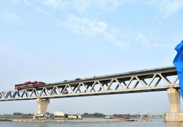 这是3月4日在孟加拉国帕德玛河上拍摄的施工中的帕德玛大桥项目现场。 中企承建的帕德玛大桥项目是孟加拉国最大桥梁项目。帕德玛大桥项目经理刘建华近日对媒体表示,新冠肺炎疫情发生后,项目部一方面采取严格措施防范疫情输入,另一方面加强人员组织调配。截至目前,帕德玛大桥主体建设总体进度已完成86%,项目进展顺利。