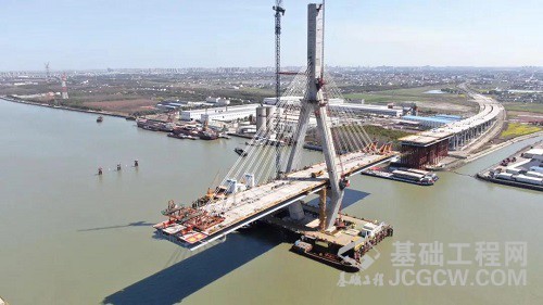 每对主梁节段吊装就位后,还需要逐段焊接、涂装,并将桥面的钢筋相互连接并浇筑接缝混凝土等多道工序的施工,最后还要安装斜拉索,将节段与已完成的桥塔相连接。