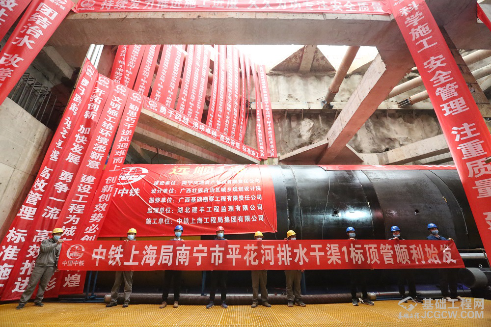 4月1日,南宁市平花河排水干渠工程顶管机“远顺1号”顺利始发,标志着项目全面进入顶管施工阶段。