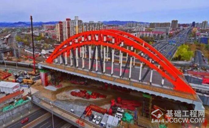 核心提示:丰台火车站改建配套工程丰台特大桥取得重要进展,施工人员于3月31日顺利将拱桥顶推至设计桥位,成功跨越京沪铁路和北京西四环,预计4月7日完成桥梁整体落梁。