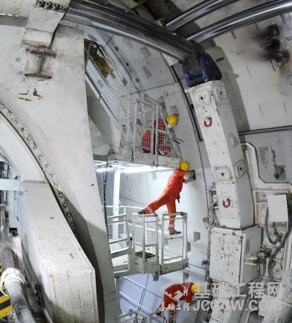 施工中遇到了隧道穿越地泥岩地层,该地层具有粘性大和涨缩性的特点,就像年糕一样粘住牙齿,致使盾构机刀盘结成泥饼,严重影响施工效率。