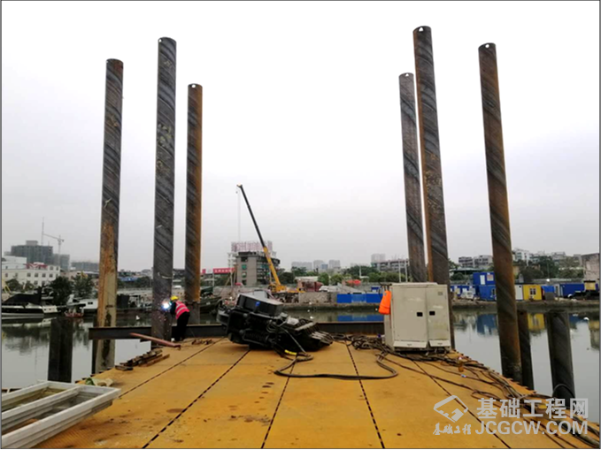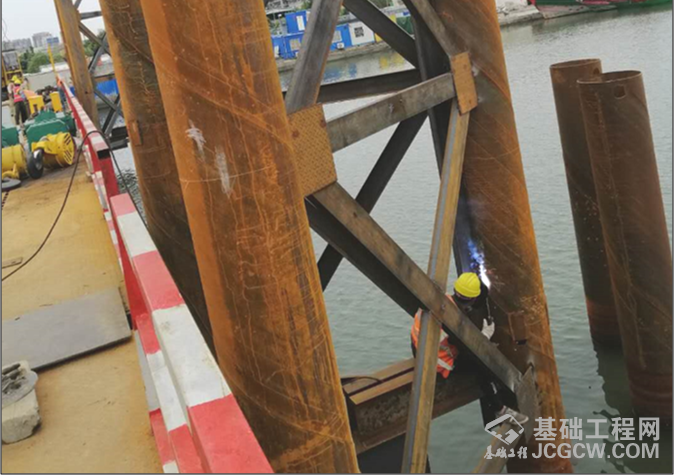 本项目施工采用的钢管桩长度为60m,施工工艺要求严格,采用焊缝强度与母材强度相同的等强焊接方式,沉桩使用紫竹桩基自行研发的液压振动锤进行打桩施工并顺利完成。紫竹桩基专注于钢板桩施工和施工设备的研发并积累了丰富的施工经验,常年与中交、中建、中铁等央企合作,针对超长钢管桩、钢板桩、施工难度大的深基坑、坚硬岩层及卵石层等提供完整的施工解决方案以及配套的施工设备。