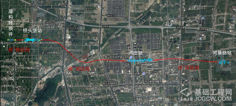 杭州地铁8号线最长土压平衡隧道桥头堡站~河庄站右线(2104米)顺利贯通(以下简称桥河区间右线)。桥头堡站~河庄站盾构区间呈东西走向,区间线路出桥头堡站后向东延伸,250m后向东南方向偏转,下穿三联横河、居民区、四工段直河、萧山孝贤塑业有限公司,然后向东偏转,下穿杭州萧山永丰化工有限公司、横岔路直湾后进入位于河景路站上的河庄站。线路沿线分布建(构)筑物主要有居民区、萧山孝贤塑业有限公司、横岔路中桥等,此次贯通的右线盾构隧道全长2104米。