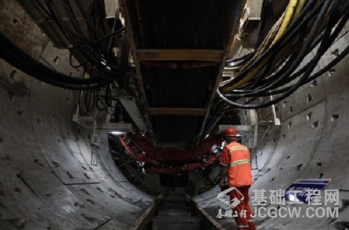“弘远6号”盾构机从地面吊装下井并完成组装,需要在数十米的竖井上方,安全完成“100吨级”吊装下井3次、“80吨级”吊装10余次,相关零星部件的吊装近百次,才能将其放置于始发工作井内。组装时,需要将近千颗高强度螺栓安装在主机各个连接部位,再由精湛的焊工将盾体上所有的刚性接缝焊接牢固,还需要将2580根管线进行上千次的连接。过程中,大到132吨重的盾构机刀盘拼装,小至10毫米的螺丝钉安装,必须丝毫不差。