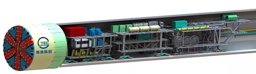 机场联络线工程建设中,将运用自主研发的14m级超大直径国产盾构。是目前上海轨道交通行业中直径最大的盾构。针对市域铁路项目所设计的泥水气平衡盾构,总长约92m,主机长度约 13.7m,满足隧道最小水平曲线半径450m的掘进施工。后配套为3节集成式车架,采用着地式车轮设计。