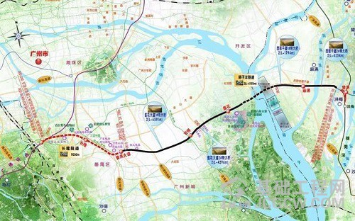狮子洋隧道全长6476米,其中盾构隧道长4900米,狮子洋江中段1800米,从广州市番禺区始发,下穿珠江狮子洋后,在东莞侧贯通出洞,为世界最大水下铁路盾构隧道,是全线施工难度、风险最大的工程,已于2019年12月17日顺利贯通。