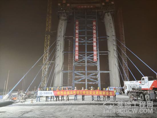 苏州最复杂的双索面混凝土斜拉桥苏州元和塘大桥边跨合龙