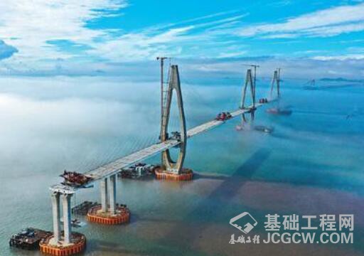 舟岱大桥主通航孔桥全长1630米,为三塔双索面钢箱梁斜拉桥,需架设113片钢箱梁,目前已完成架设107片。