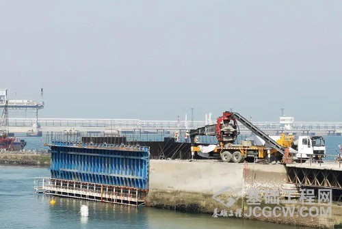大连湾海底隧道工程干坞子项工程防波堤胸墙开始浇注