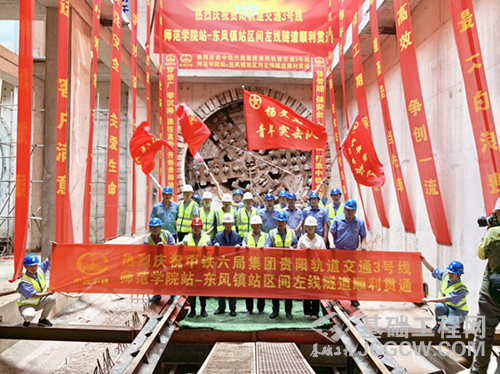 核心提示:6月18日上午10:00,伴随着掘进轰鸣声,“黔进2号”盾构机冲破最后一道屏障并顺利到达接收井内,贵阳轨道交通3号线师范学院~东风镇站盾构试验段左线区间隧道顺利贯通,标志着贵州省首个盾构试验段顺利实现双线贯通。