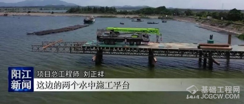 项目总工程师 刘正祥:每天的施工进度是12米,目前是完成了72米,施工的顺序依次是由下往上,近期我们会施工靠近海堤路这边的两个水中施工平台,今年将力争完成高新区段水上栈桥的施工及100根桥梁桩基施工。