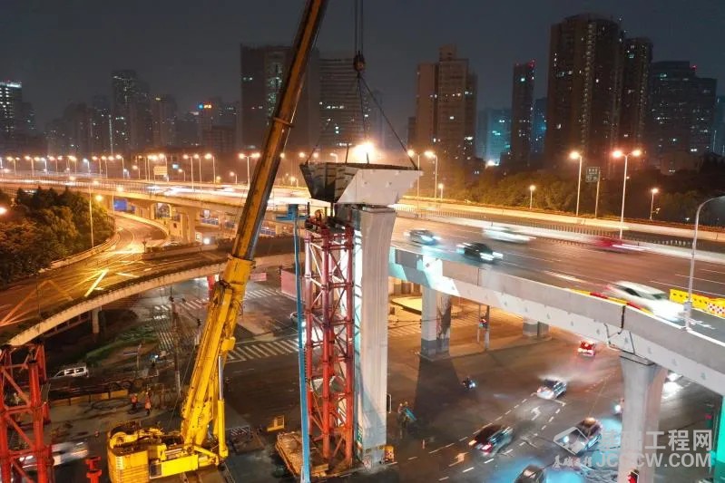 随着预制拼装技术不断发展成熟,市政高架预制拼装在高度、跨径上都有所突破,采用大型汽车吊、履带吊、塔吊等方式,构成高架主体结构的双节“石库门”式立柱和大节段钢箱梁等预制构件在吊装方面有了新的提升,实施“六化”(城市更新快速化,高架建造装配化,项目实施信息化,劳动力管理规范化,工程管理精细化,工具设施定型化)高架管理理念保证了中心城区的交通和周边环境。北横通道将同地面道路、天目路大转盘、南北高架形成四层立交体系,大大改善天目路立交自90年代以来产生的向外辐射交通不便、中短距离交通拥堵的困境。同时,有效分流延安路高架车辆,缓解东西向交通压力。