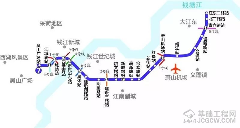 地铁7号线(吴山广场站-江东二路站)全长47.5公里,全部为地下线,共设车站23座,其中换乘站10座,全线计划2021年建成,建成后将形成一条联系主城、江南副城滨江区和萧山机场的纽带。