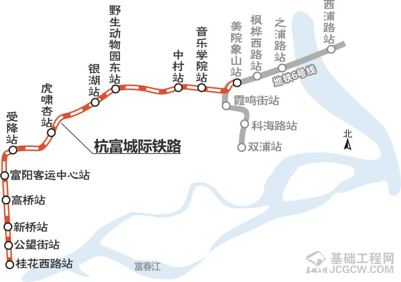 杭富线起自在建的地铁6号线美院象山站,终点为杭州市富阳区桂花路站,全长23.5公里,设12座地下车站,线路采用AH型车。目前全线车站主体结构均已完成,正积极推进出入口等附属结构、铺轨、机电安装和装修有关工作,计划2020年底建成。
