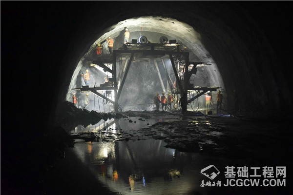 为克服涌水,施工单位组建了40多人的反坡施工排水队,设置6条专用排水道,安装了20台固定水泵、3套移动泵站,不间断抽水,保证施工正常进行。