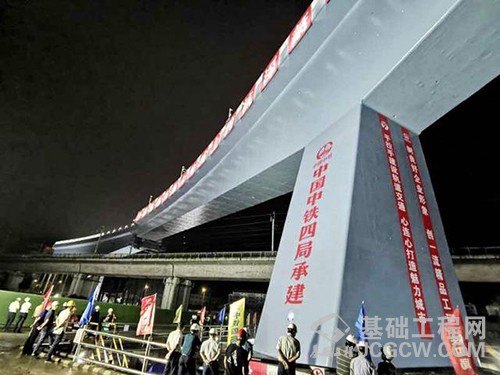 为解决这一系列施工难题,承担施工任务的中铁四局有关作业人员在较长一侧桥面22个施工节段中,坚持使用高精度全站仪、水准仪对不同天气及工况下的误差进行采集,通过软件计算并修正钢筋定位参数,最终成桥轴线偏位小于17毫米。据估算,在桥梁施工期间累计进行了300余次的精准测量。