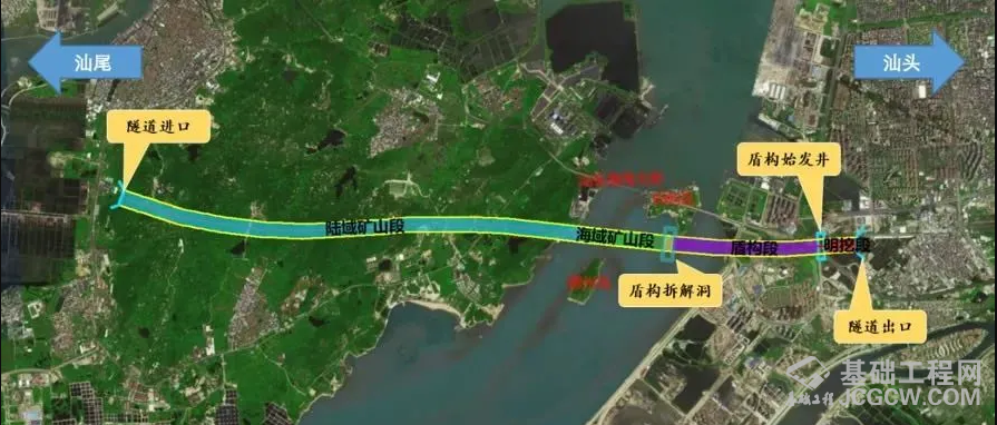 汕头湾海底隧道位于广东省汕头市,在汕头海湾大桥下游妈屿岛与德洲岛之间下穿汕头湾,隧道全长9781米,是汕汕铁路全线控制性工程。