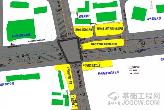 文晖路建国北路路口人行地道工程位于建国北路和文晖路路口,呈口字型布置,该工程由下城区住建局负责建设,此次人行地道工程一期交改结合机场轨道快线文晖风井一期交改一并实施。