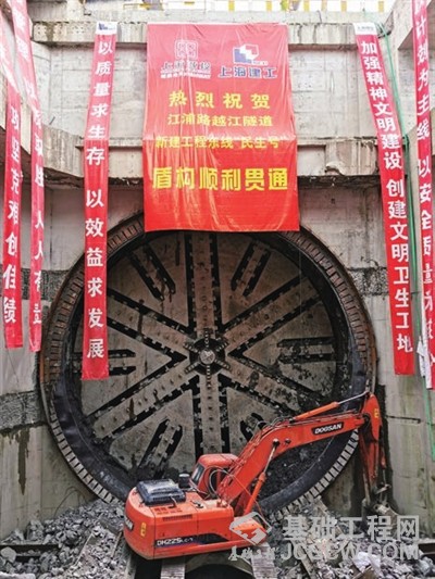 核心提示:历时5个月掘进,8月2日晚,江浦路越江隧道新建工程东线盾构“民生号”盾构机本体全部进入位于杨浦的接收井。至此,江浦路越江隧道盾构段正式实现东西双线贯通,预计明年具备通车条件。