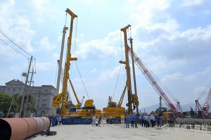 本次开工建设的秦望通道桩基工程为秦望广场站超深基坑基底抗拨桩,桩基设计数量为487根,桩基直径1.2米,桩长64.75米。其中,桩基进入中风化硬岩深度达23米,施工难度极大。
