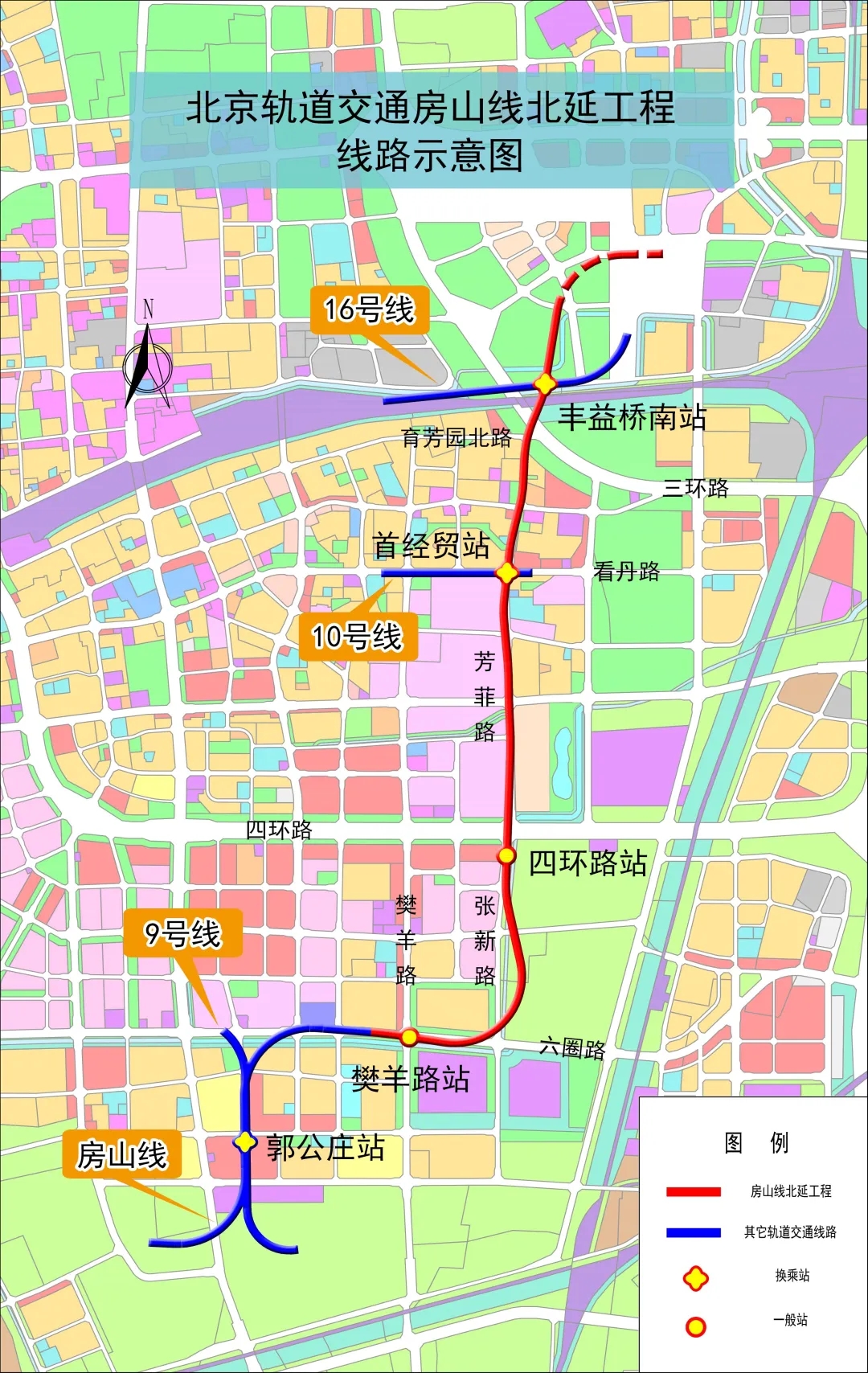 房山线北延开通后,将增加首经贸站、丰益桥南站两处与中心城线网10号线、16号线的换乘点。