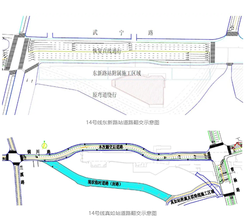 申通地铁集团说,上海轨道交通14号线东新路站上方主干道武宁路东新路路段,以及真如站上方铜川路道路均已完成道路翻交并恢复通行。详↓