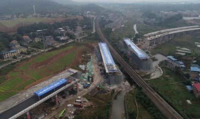经过反复验证,项目团队给出了“解堵”方案:采用目前国内先进的跨铁路施工技术转体桥工艺,采取“先建后转”的施工方法,先在沪昆铁路两侧空地进行施工,待桥梁上部结构完成后进行转体,实现对下方铁路的跨越,通过转体就位打破桥梁地形、交通、环境等条件的制约,最大限度减少对周边交通的干扰,极大降低施工安全风险,充分体现绿色环保建设理念。