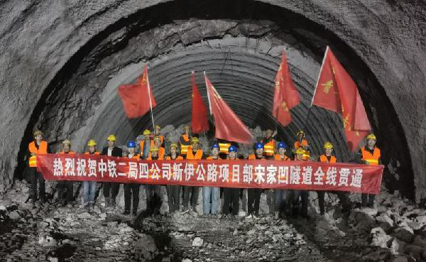 据了解,此次贯通的宋家凹隧道位于洛阳市宜阳县境内,隧道全长2508米,最大埋深113.5米,Ⅳ、Ⅴ级围岩占88%,地质结构复杂、埋深浅,多次下穿富水沟谷,施工难度大、安全风险高,是全线控制性工程之一。自2019年6月底隧道开工建设以来,历经16个月的日夜鏖战,比原计划提前两个半月实现隧道全线贯通。