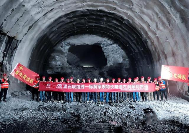 10月25日上午10点,随着一阵轰隆炮声,最后3米围岩成功爆破,湄石联络线一标黄家坝特长隧道左洞实现顺利贯通,湄石高速公路建成通车打下坚实的基础。