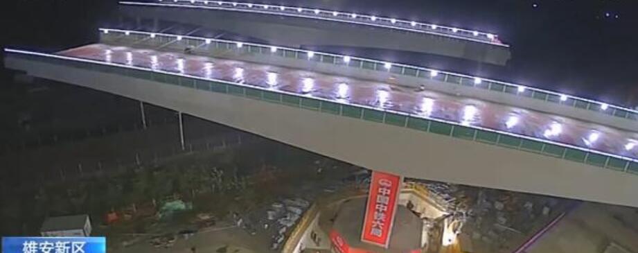 27日凌晨,河北雄安新区第一座上跨京九铁路双幅转体桥——牤牛河特大桥实现华丽“转身”,为荣乌高速公路新线早日通车奠定了坚实基础。