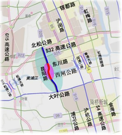 昆阳路越江大桥又称闵浦三桥,该工程北起闵行区东川路,跨越黄浦江后在西闸公路以北落地,终点与奉贤区浦卫公路改建工程衔接,全长约3.49公里。其中,越江大桥部分长约1.94公里。设计为双向6车道,设计时速为60公里/时。附近居民往来两区将由原来的必须绕行耗时约40分钟缩短约5分钟。