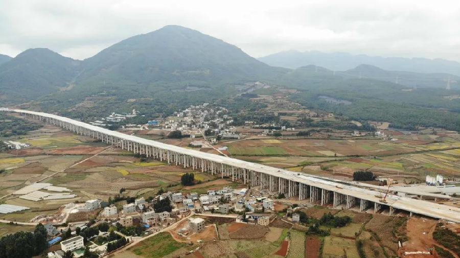 K51+842特大桥及匝D大桥位于武定至倘甸至寻甸高速公路九龙立交。K51+842特大桥单幅全长3342米,全桥共34联,匝D大桥共3联,墩柱最高达33米。