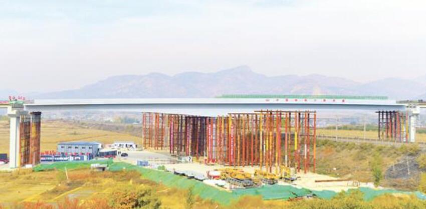 为降低施工对铁路运营的影响,工程采取“先建后转”工艺,先沿铁路平行方向建设桥体,桥体建好后,在2台400吨千斤顶牵引下旋转至设计位置,实现与引桥对接。