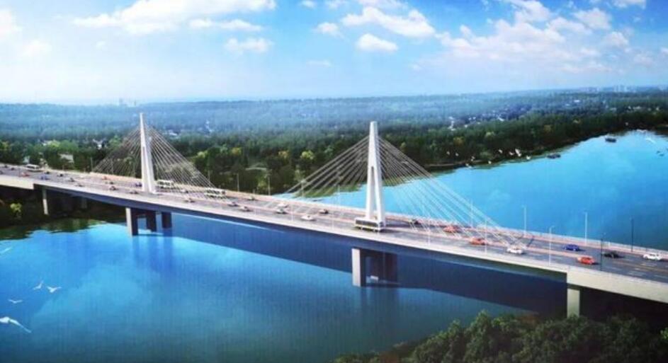 主干道设计行车速度60千米/小时,辅道设计行车速度30千米/小时。主桥采用双塔3跨斜拉结构,采用预应力混凝土矮塔斜拉桥,桥跨布置为100米+168米+100米。引桥为40米装配式简支转连续箱梁,南岸桥跨布置为2联3×40米连续梁桥,北岸布置一联5跨连续梁桥。工程主要内容包括黄河大桥及其连接线,以及相应的排水工程、交通安全设施、绿化、亮化等配套工程。